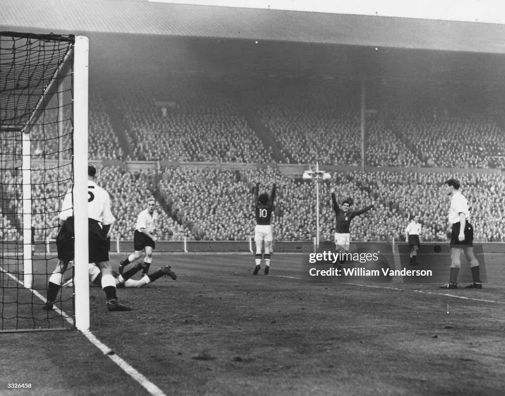 In this grand unofficial 'World Championship Decider' Puskás with an eye for the unique situation leading his heralds fired the goal heard around the athletic world with his 'Goal of the Century' that is a beautiful dreamed-out sculpture of skill and a bugle of Puskás' famous arrival as the world's greatest player and new No. 1 international record-holder with 60 goals in 50 matches. It became soccer's first new spectacular manifesto and a sport-shaping master match prophetic of the future that perhaps all 'modern football' can date from it. To beat the mountain tower team of football dreams 6-3 in London and 7-1 in Budapest gives the team and its captain astral fame and genius.